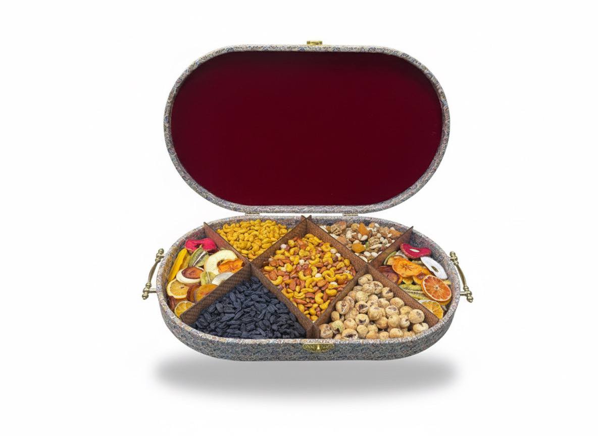 بعاد جعبه 7 × 33 × 56 در رنگهای آبی ، زرد ، قرمز ، فیروزه ای آجیل چهار مغز شور 800 گرم آجیل شب یلدا 400 گرم بادام هندی شور 400 گرم انجیر خشک پرک 400 گرم مویز 400 گرم میوه خشک مخلوط 300 گرم