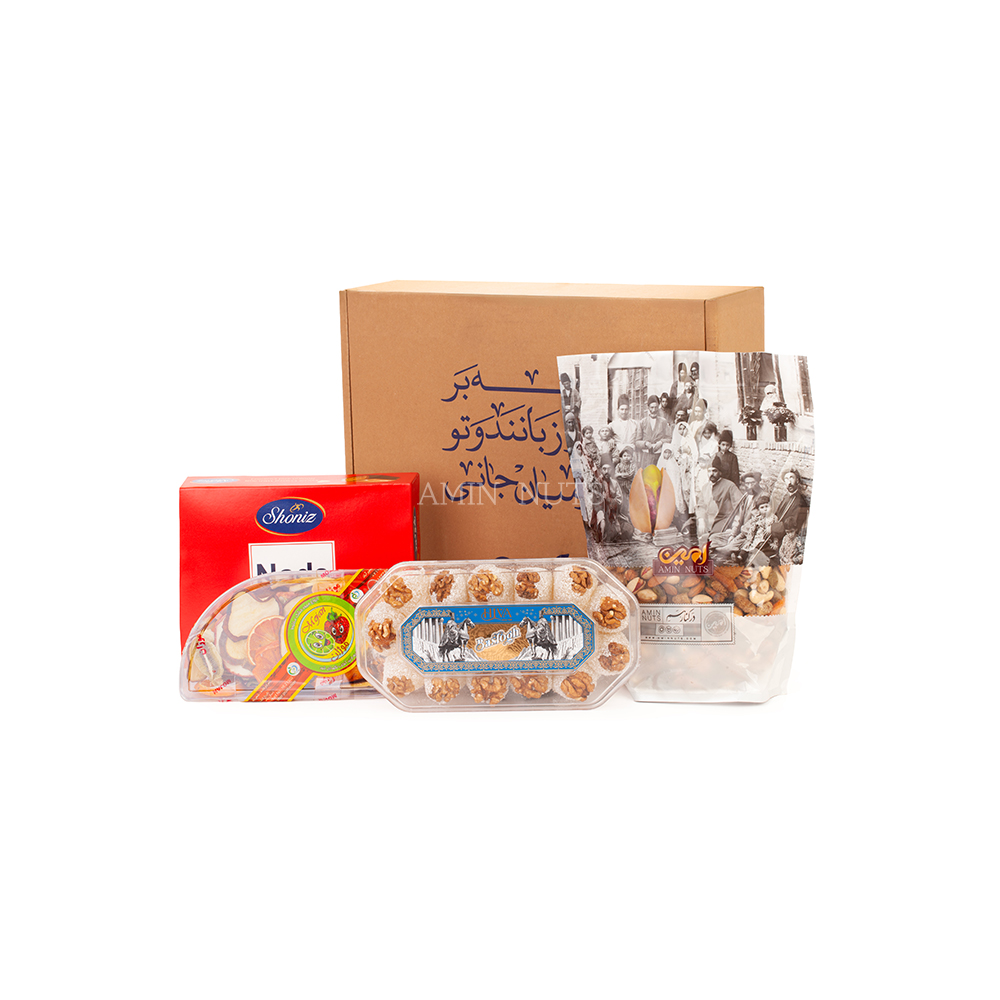آجیل ویژه یلدا یک کیلو گرم باسلق هیوا میوه خشک ۳۰۰ گرمی موژان شکلات شونیز نادو نیم کیلو